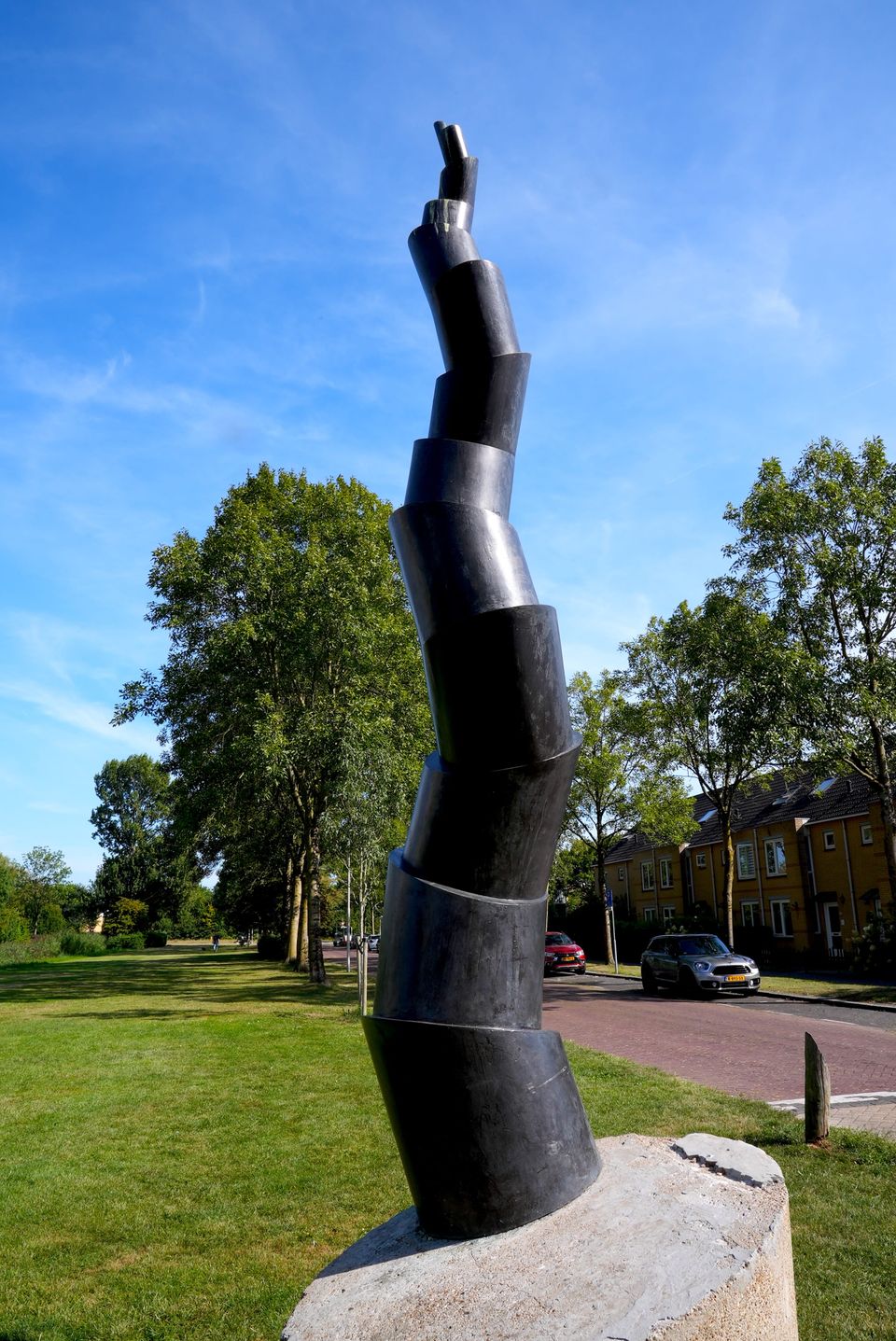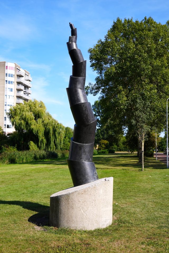 Deze Phyllotaxis in Westwijk is een van de vele gelijknamige kunstwerken van Buisman. Verschillende werken, met eenzelfde inspiratiebron. Dit vijf meter hoge werk weegt zo’n 4,5 ton en is in 1994 per hijskraan op de sokkel gezet. Kunst van Buisman nodigt uit om met meer aandacht, bewondering en respect naar de natuur te kijken.
