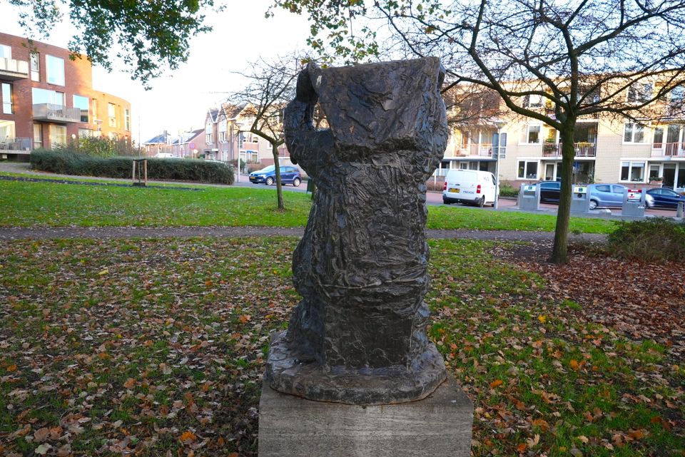 Je kijkt naar een priester die zich klaarmaakt voor de mis. Dit beeldhouwwerk is gemaakt door Pieter d’Hont en draagt de naam Amikt. De titel verwijst naar de doek die de priester over zijn schouders wil hangen: de amikt. Dit is een rechthoekige linnen doek die in de katholieke kerk wordt gedragen als halsdoek. De belangrijkste functie van de amikt is kostbare gewaden, zoals de kazuifel en de dalmatiek, te beschermen tegen het zweet van de priester.